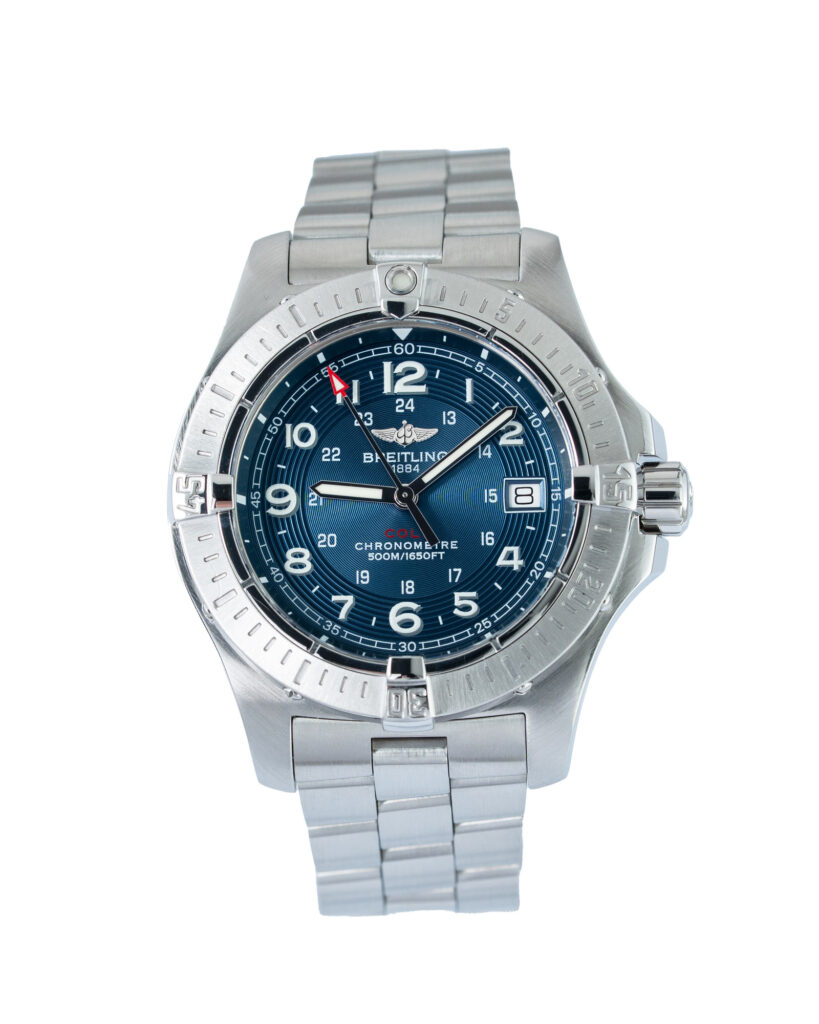 brand: Breitling Reference: A7438010 Model: Colt Quartz case MATERIAL: Steel strap: Bracelet case Size (MM): 41mm Dial colour: Black Bezel: Steel Year: 02/2007 Condition: Excellent Box papers : Paperwork/box