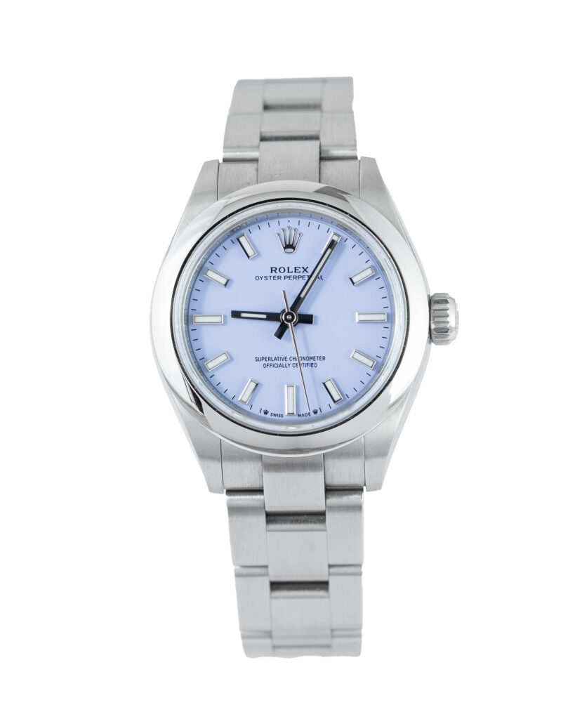 brand: Rolex Reference: 276200 Model: Oyster Perpetual case MATERIAL: Steel strap: Bracelet case Size (MM): 28mm Dial colour: Purple Bezel: Steel Year: 09/2025 Condition: Excellent Box papers : Paperwork/box