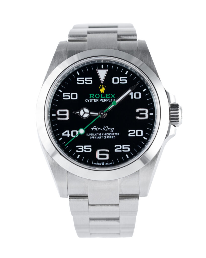 Make: Rolex Reference: 126900 Model: Air-King Case: Steel Bracelet: Bracelet Size: 40mm Dial colour: Black Bezel: Smooth Year: 11/2022 Condition: Excellent Box papers : Paperwork/box