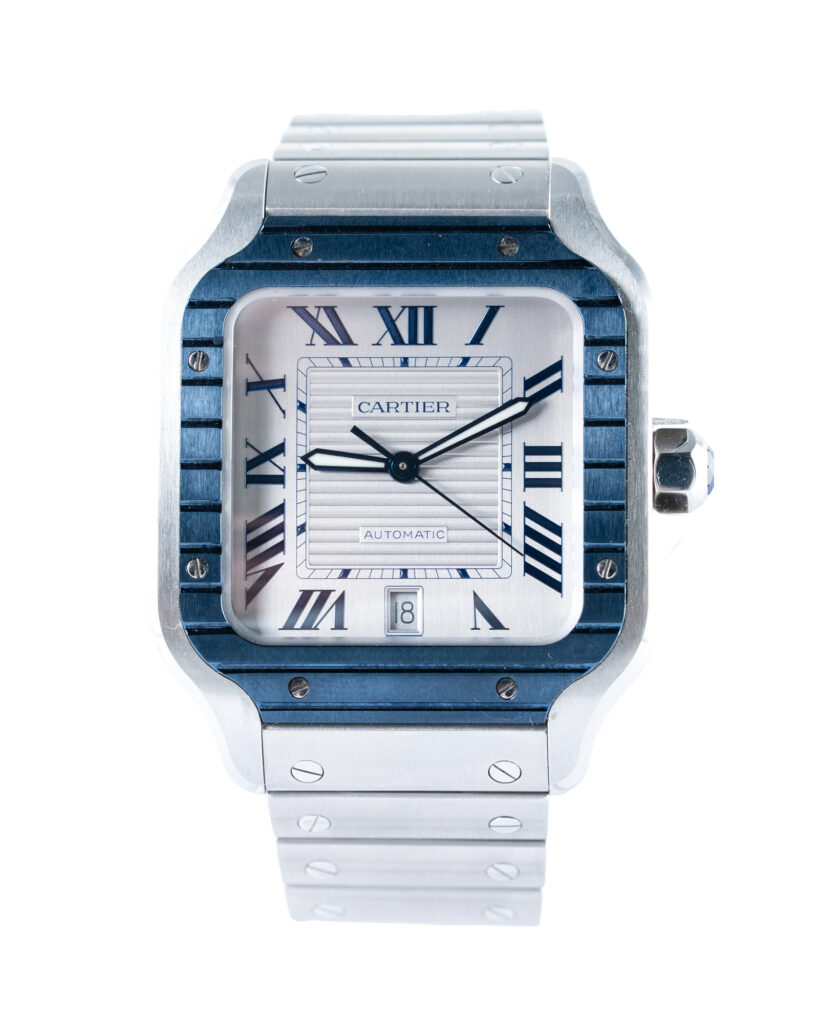 Make: Cartier Reference: 4072261045CX Model: Santos De Cartier Case: Steel Bracelet: Stainless Steel Size: 39.8mm Dial colour: White Bezel: Steel Year: 10/2022 Condition: Excellent Box papers : Paperwork/box