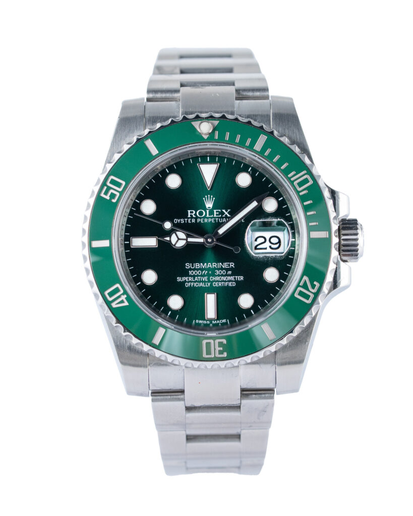 Make: Rolex Reference: 116610LV Model: Submariner Case: Steel Bracelet: Bracelet Size: 40mm Dial colour: Green Bezel: Ceramic Year: 07/2015 Condition: Excellent Box papers : Paperwork/box
