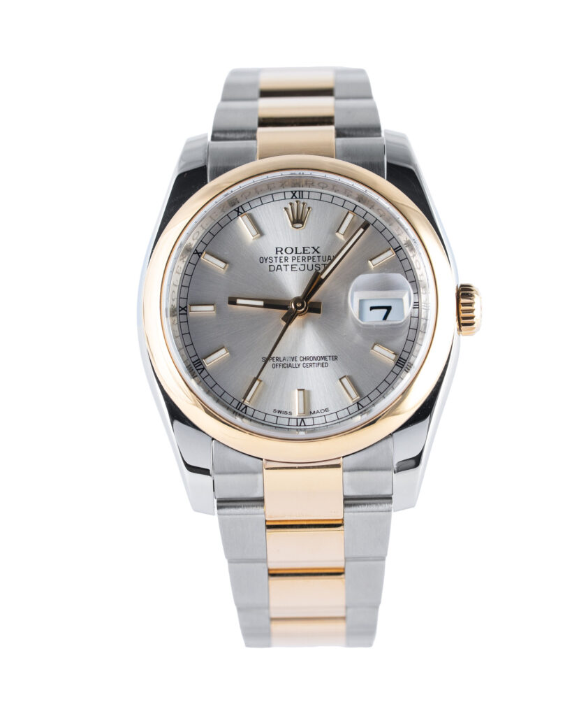 Make: Rolex Reference: 116203 Model: Datejust Case: Steel & Yellow Gold Bracelet: Bracelet Size: 36mm Dial colour: Grey Bezel: Steel Year: 01/2014 Condition: Excellent Box papers : Paperwork/box