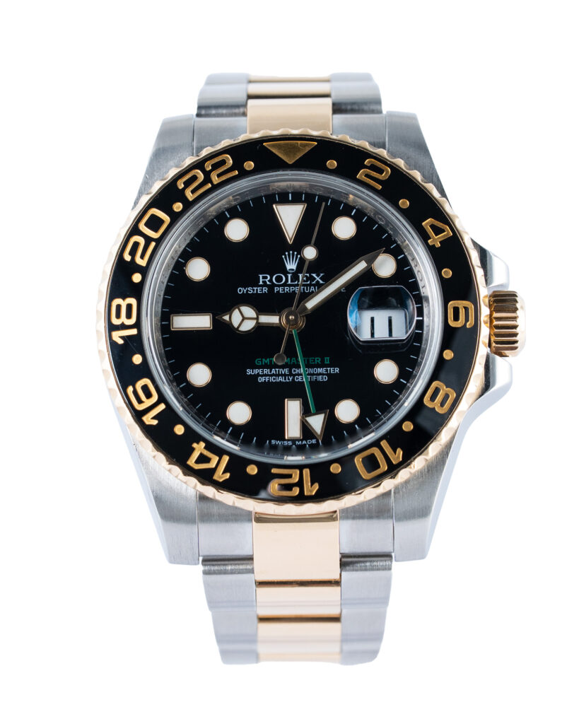 Make: Rolex Reference: 116713LN Model: GMT-Master II Case: Steel & Gold Bracelet: Bracelet Size: 40mm Dial colour: Black Bezel: Ceramic Year: 09/2010 Condition: Excellent Box papers : Paperwork/box