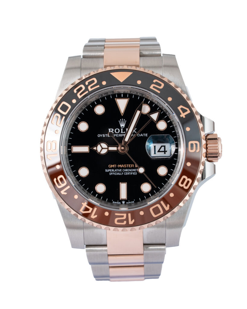 brand: Rolex Reference: 126711CHNR Model: GMT-Master II case MATERIAL: Steel & Rose Gold strap: Bracelet case Size (MM): 40mm Dial colour: Black Bezel: Ceramic Year: 08/2025 Condition: Unworn Box papers : Paperwork/box