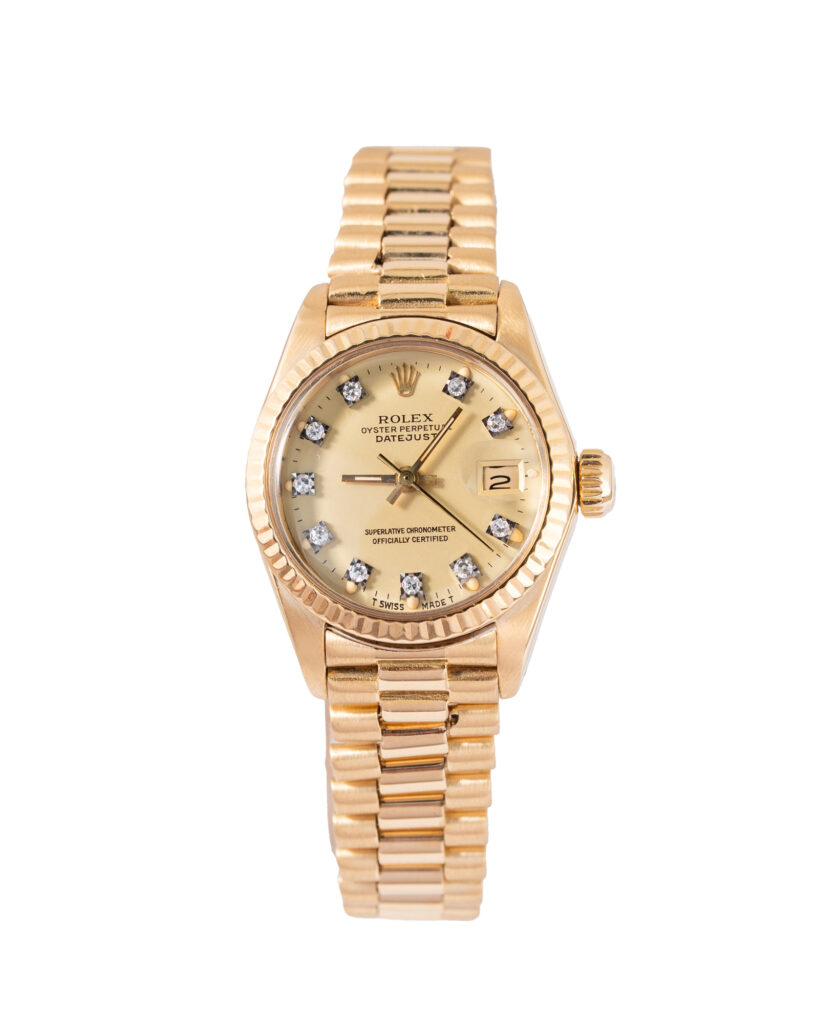 brand: Rolex Reference: 6917 Model: Datejust case MATERIAL: Yellow Gold strap: Bracelet case Size (MM): 26mm Dial colour: Champagne Bezel: Yellow Gold Year: 09/1984 Condition: Good Box papers : Complete