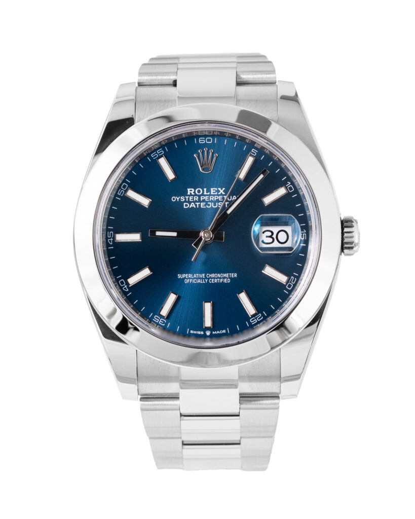 brand: Rolex Reference: 126300 Model: Datejust case MATERIAL: Steel strap: Bracelet case Size (MM): 41mm Dial colour: Blue Bezel: Steel Year: 01/2022 Condition: Excellent Box papers : Paperwork/box