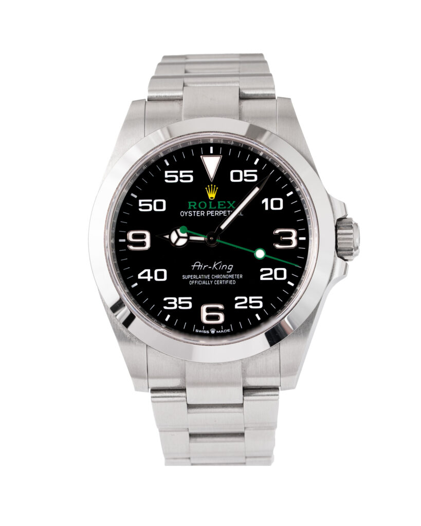 brand: Rolex Reference: 126900 Model: Air-King case MATERIAL: Steel strap: Bracelet case Size (MM): 40mm Dial colour: Black Bezel: Steel Year: 02/2024 Condition: Excellent Box papers : Paperwork/box