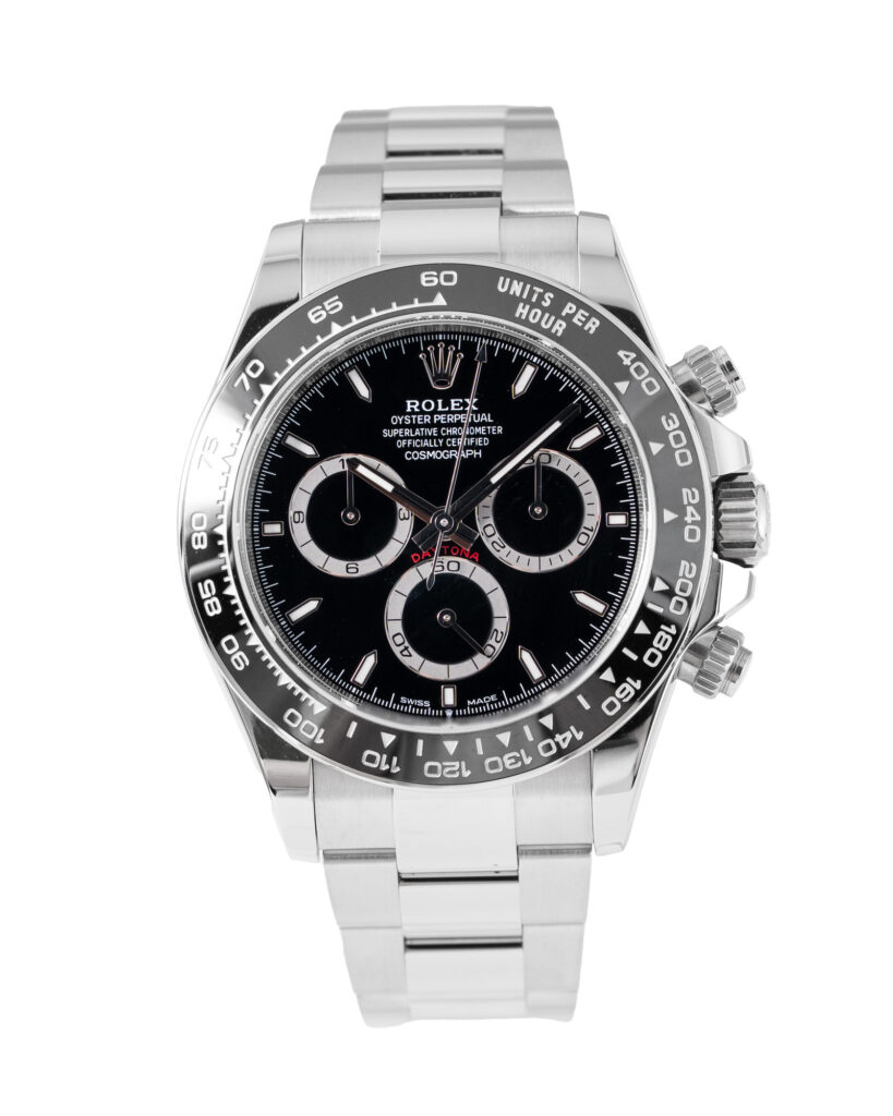 brand: Rolex Reference: 126500LN Model: Daytona case MATERIAL: Steel strap: Bracelet case Size (MM): 40mm Dial colour: Black Bezel: Ceramic Year: 08/2024 Condition: Excellent Box papers : Paperwork/box