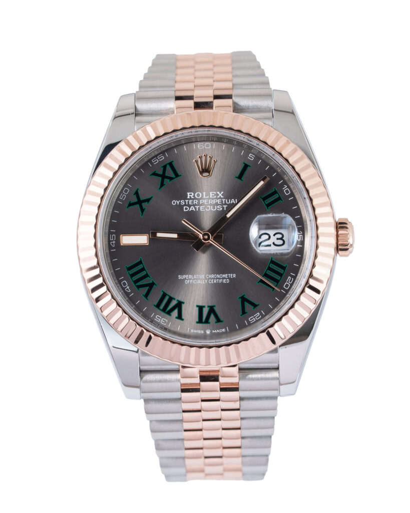 brand: Rolex Reference: 126331 Model: Datejust case MATERIAL: Steel & Rose Gold strap: Bracelet case Size (MM): 41mm Dial colour: Grey Bezel: Rose Gold Year: 08/2023 Condition: Excellent Box papers : Paperwork/box