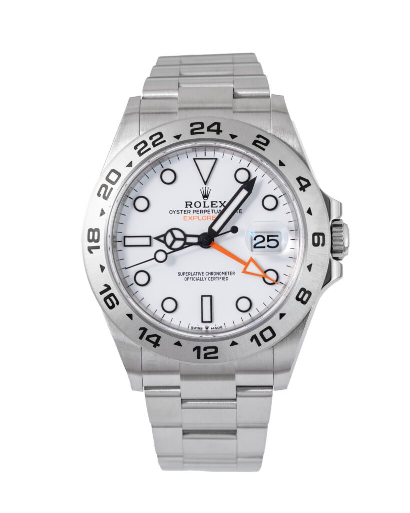 brand: Rolex Reference: 226570 Model: Explorer II case MATERIAL: Steel strap: Bracelet case Size (MM): 42mm Dial colour: White Bezel: Steel Year: 08/2025 Condition: Excellent Box papers : Paperwork/box