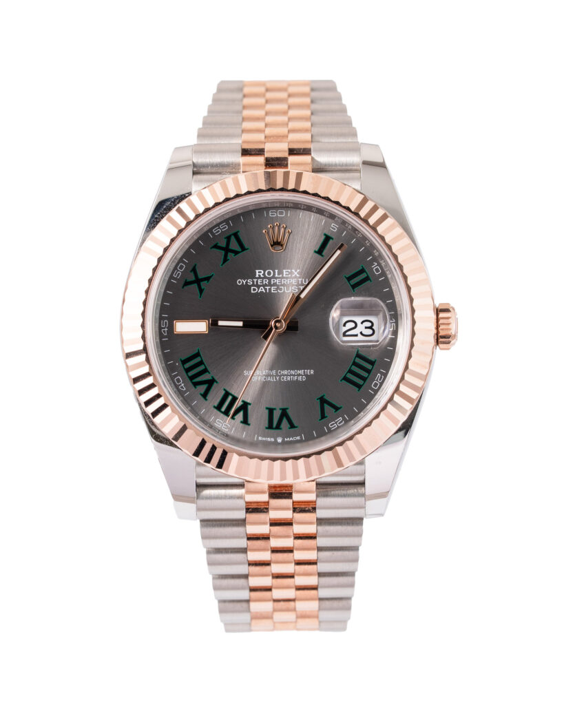 brand: Rolex Reference: 126331 Model: Datejust case MATERIAL: Steel & Rose Gold strap: Bracelet case Size (MM): 41mm Dial colour: Grey Bezel: Rose Gold Year: 01/2024 Condition: Excellent Box papers : Paperwork/box