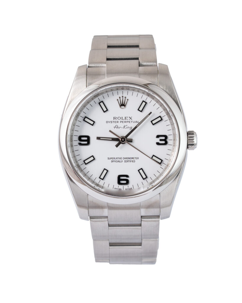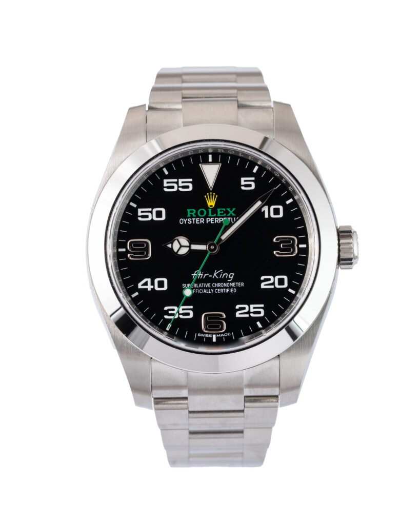 brand: Rolex Reference: 116900 Model: Air-King case MATERIAL: Steel strap: Bracelet case Size (MM): 40mm Dial colour: Black Bezel: Steel Condition: Unworn Box papers : Paperwork/box