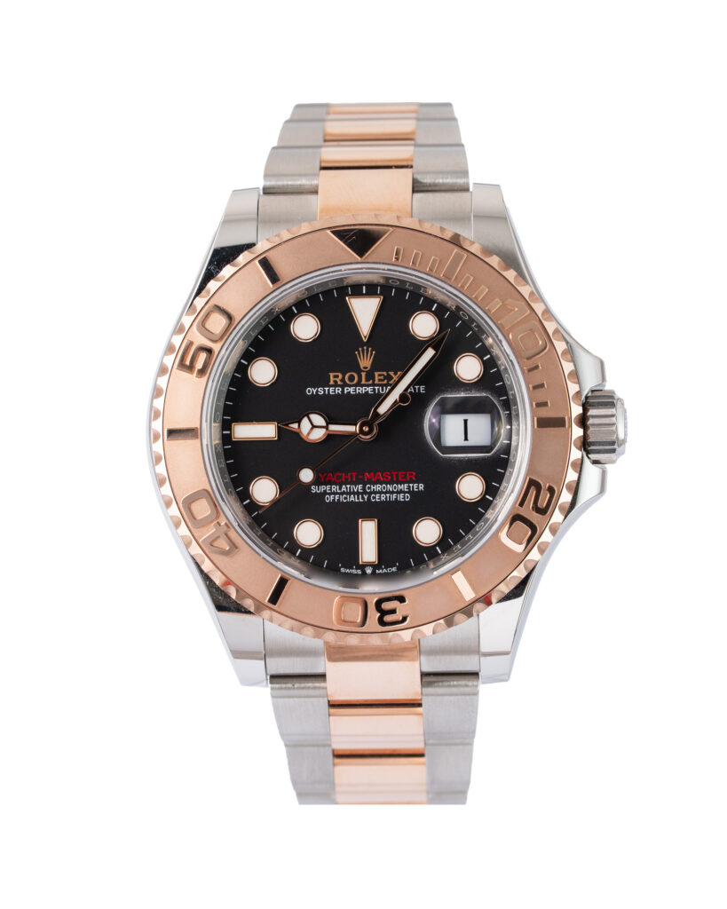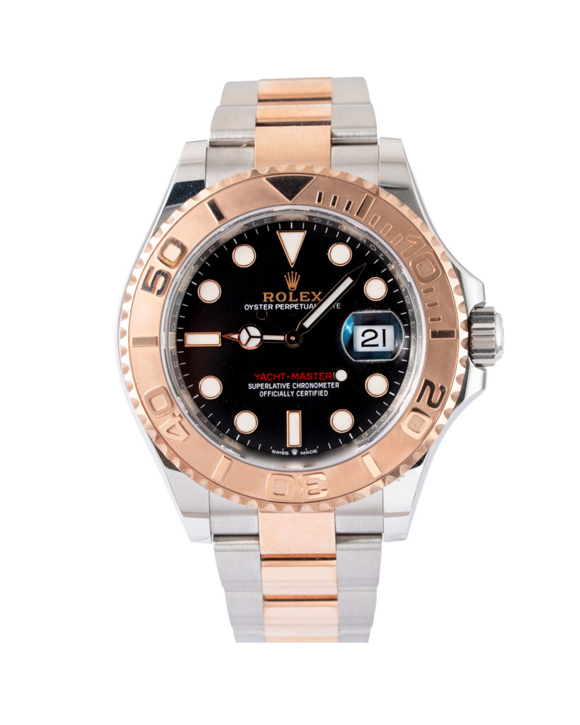 brand: Rolex Reference: 126621 Model: Yacht-Master case MATERIAL: Steel & Rose Gold strap: Bracelet case Size (MM): 40mm Dial colour: Black Bezel: Rose Gold Condition: Excellent Box papers : Paperwork/box