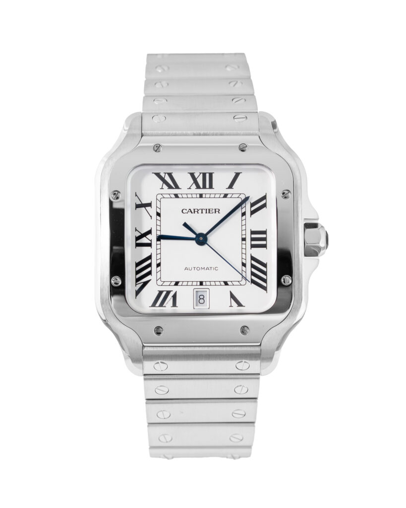 brand: Cartier Reference: WSSA0018 Model: Santos case MATERIAL: Steel strap: Bracelet case Size (MM): 39.8mm Dial colour: White Bezel: Steel Year: 04/2022 Condition: Excellent Box papers : Paperwork/box