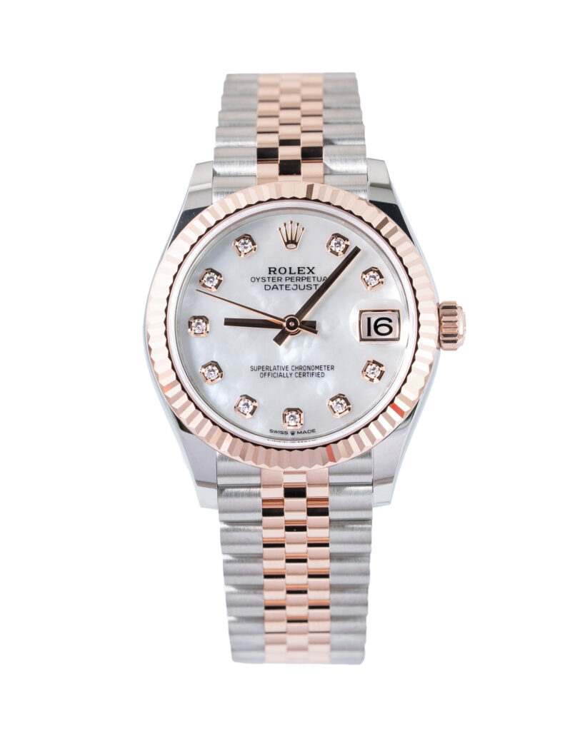 brand: Rolex Reference: 278271 Model: Datejust case MATERIAL: Steel & Rose Gold strap: Bracelet case Size (MM): 31mm Dial colour: Mother Of Pearl Bezel: Rose Gold Year: 12/2025 Condition: Unworn Box papers : Paperwork/box
