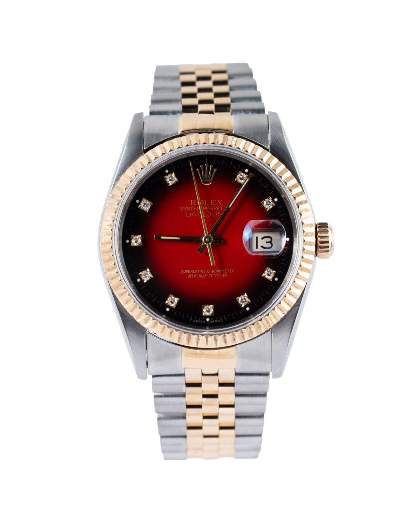 Make: Rolex Reference: 116233 Model: Datejust Case: Steel & Yellow Gold Bracelet: Bracelet Size: 36mm Dial colour: Red Bezel: Fluted Year: 12/1991 Condition: Good Box papers : Paperwork/box