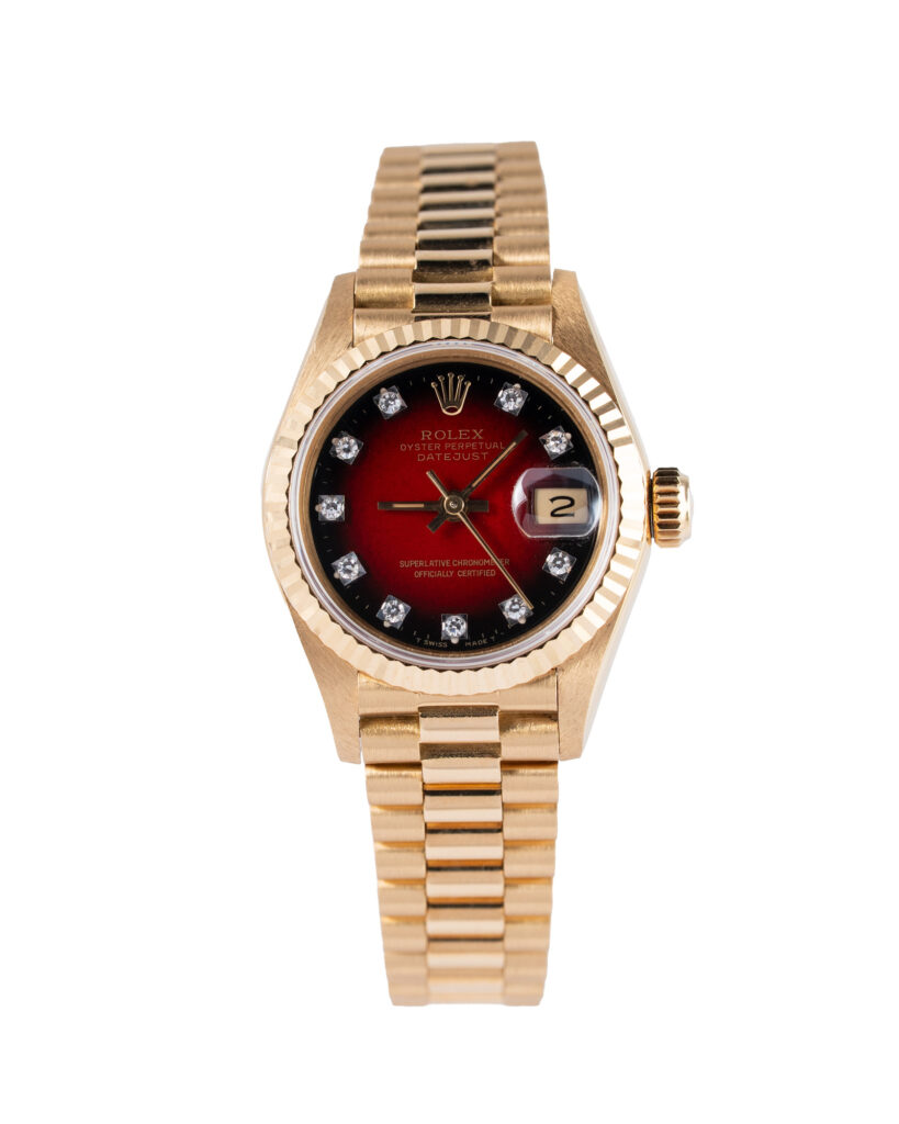 Make: Rolex Reference: 69178 Model: Datejust Case: Yellow Gold Bracelet: Bracelet Size: 26mm Dial colour: Red Bezel: Fluted Year: 05/1993 Condition: Excellent Box papers : Paperwork/box