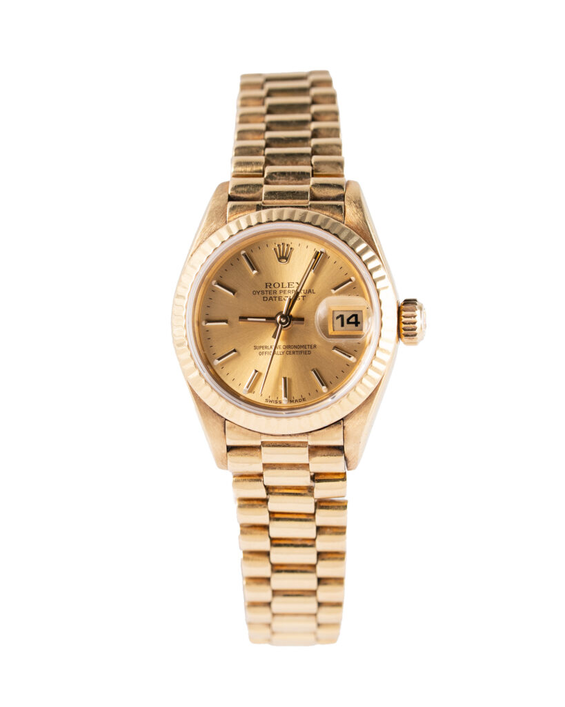 Make: Rolex Reference: 69178 Model: Datejust Case: Yellow Gold Bracelet: Presidential Size: 26mm Dial colour: Champagne Bezel: Fluted Condition: Pre Owned Box papers : Service Paper/box