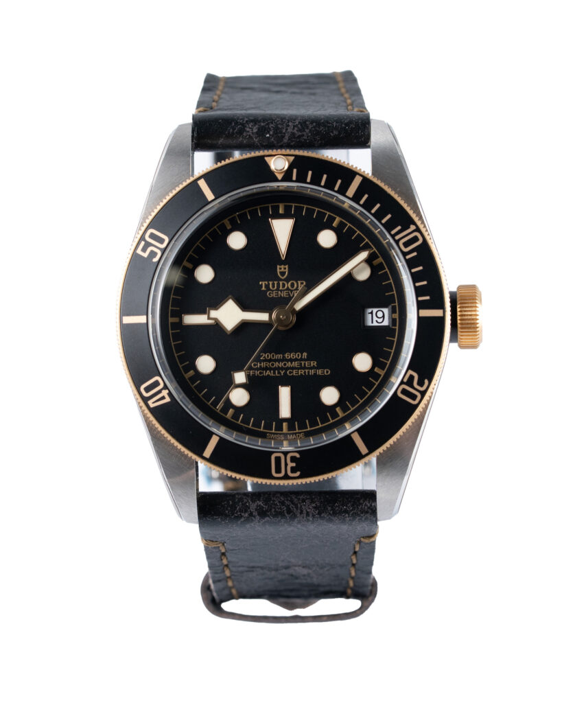 Make: Tudor Reference: 79733N Model: Black Bay 41 Case: Steel & Yellow Gold Bracelet: Leather Size: 41mm Dial colour: Black Bezel: Steel Year: 02/2025 Condition: Excellent Box papers : Paperwork/box