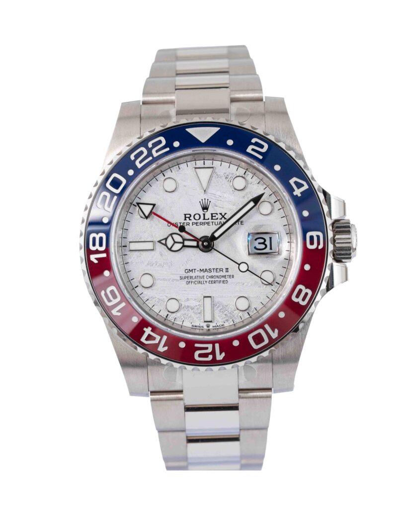 brand: Rolex Reference: 126719BLRO Model: GMT-Master II case MATERIAL: White Gold strap: Bracelet case Size (MM): 40mm Dial colour: Meteorite Bezel: Ceramic Year: 06/2022 Condition: Excellent Box papers : Paperwork/box