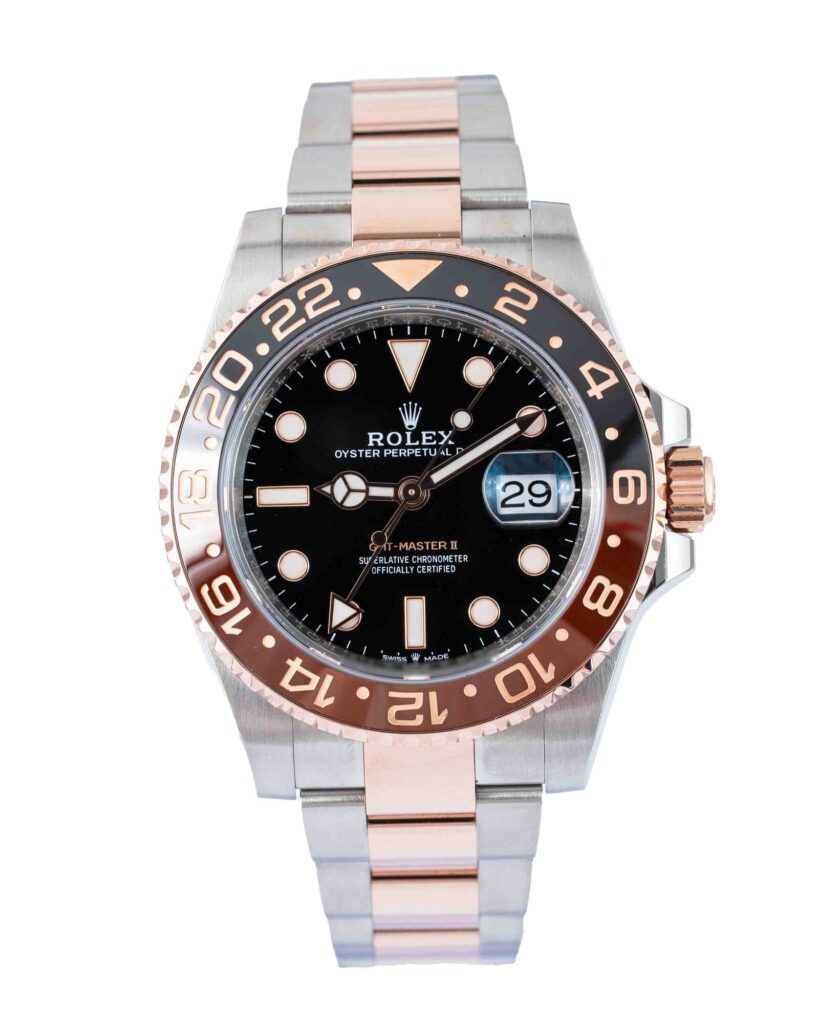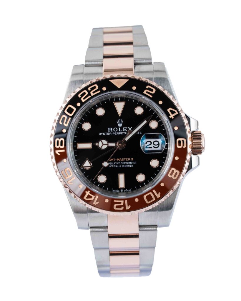 brand: Rolex Reference: 126711CHNR Model: GMT-Master II case MATERIAL: Steel & Rose Gold strap: Bracelet case Size (MM): 40mm Dial colour: Black Bezel: Ceramic Year: 06/2020 Condition: Excellent Box papers : Paperwork/box