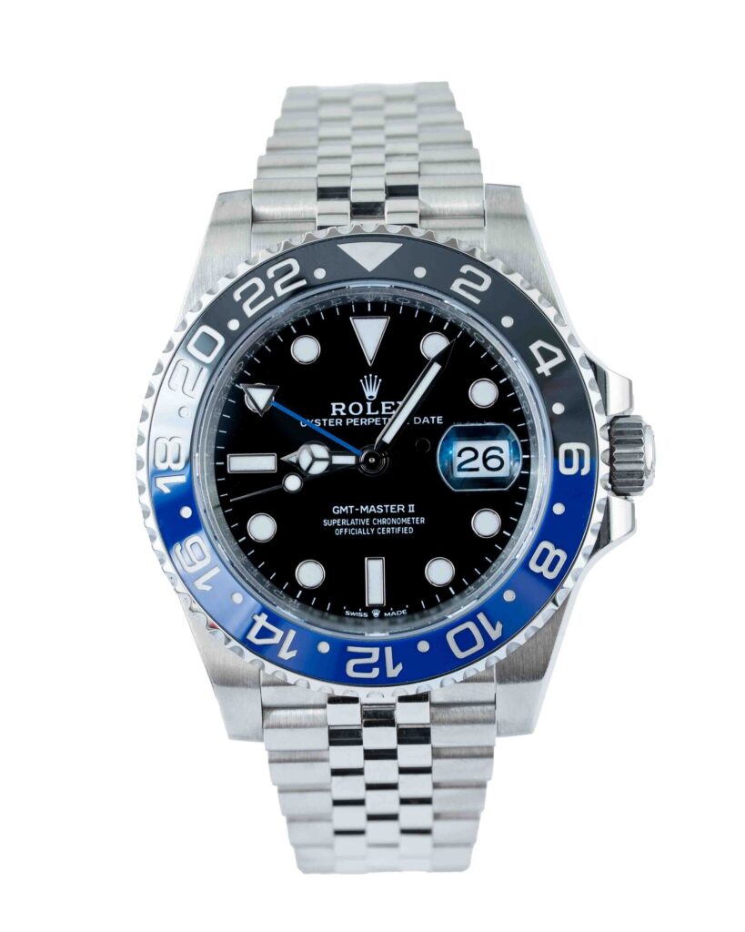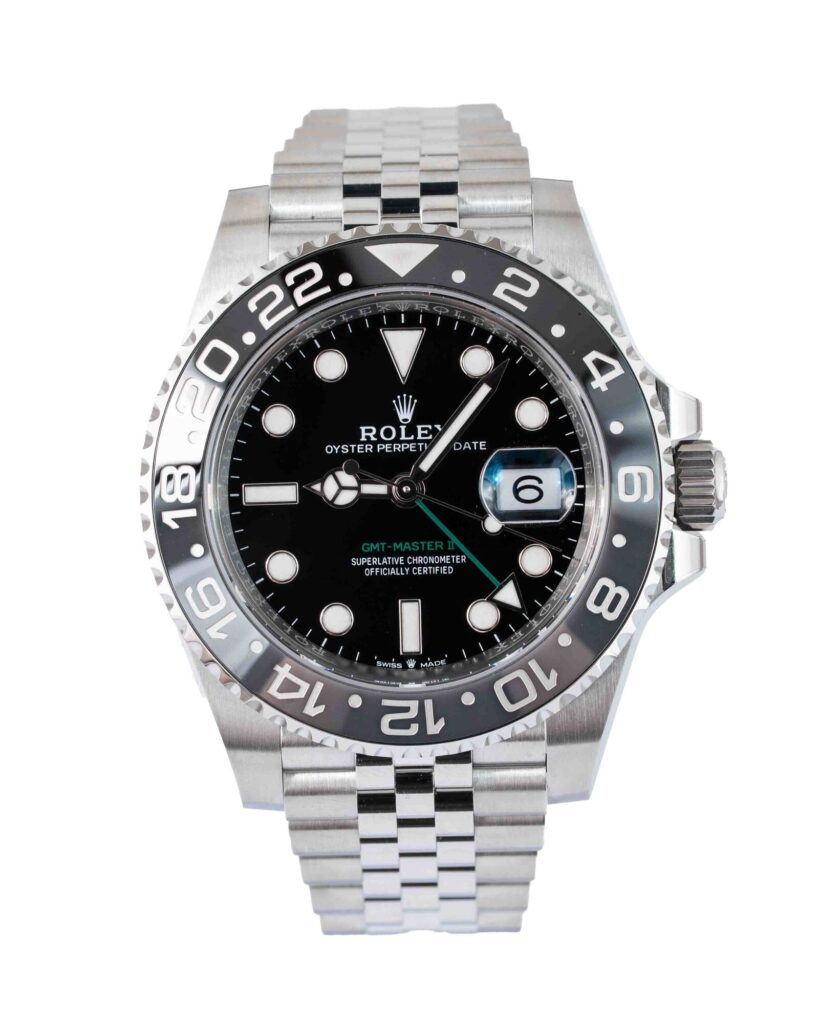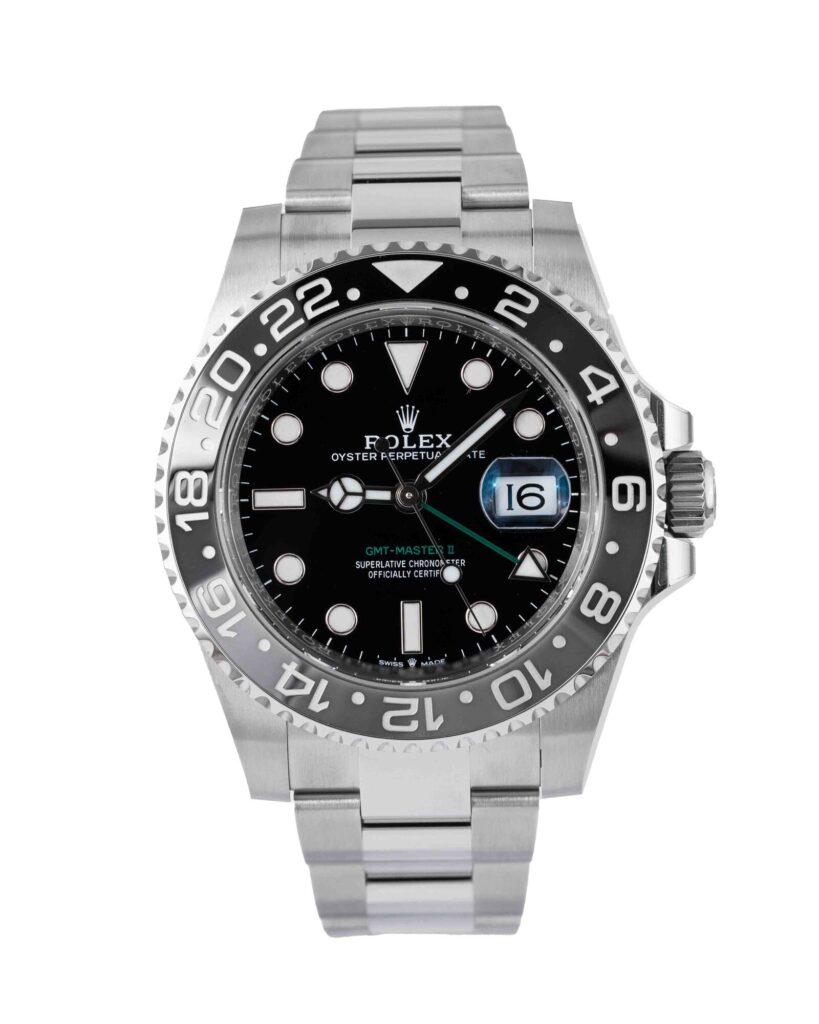 brand: Rolex Reference: 126710BLNR Model: GMT-Master II case MATERIAL: Steel strap: Bracelet case Size (MM): 40mm Dial colour: Black Bezel: Ceramic Year: 05/2024 Condition: Excellent Box papers : Paperwork/box