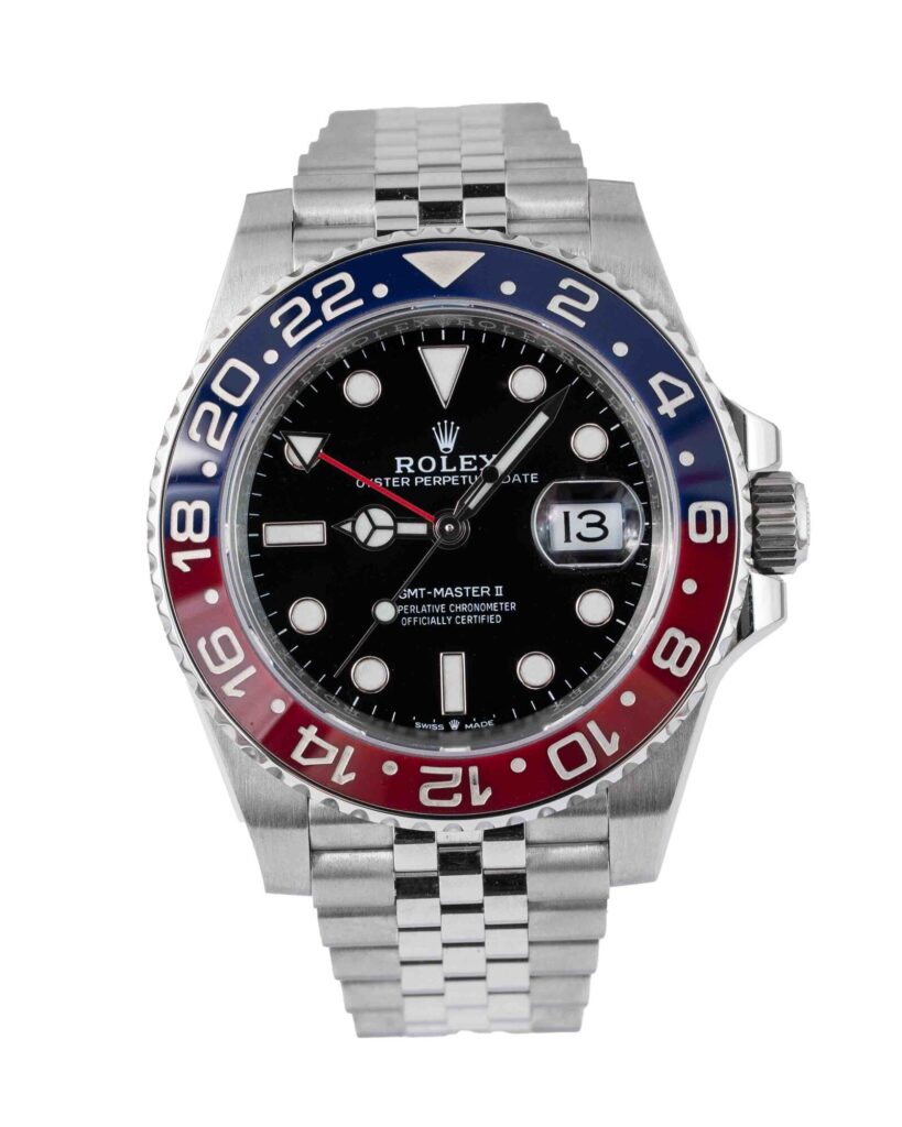 brand: Rolex Reference: 126710BLRO Model: GMT-Master II case MATERIAL: Steel strap: Bracelet case Size (MM): 40mm Dial colour: Black Bezel: Ceramic Year: 08/2022 Condition: Excellent Box papers : Paperwork/box