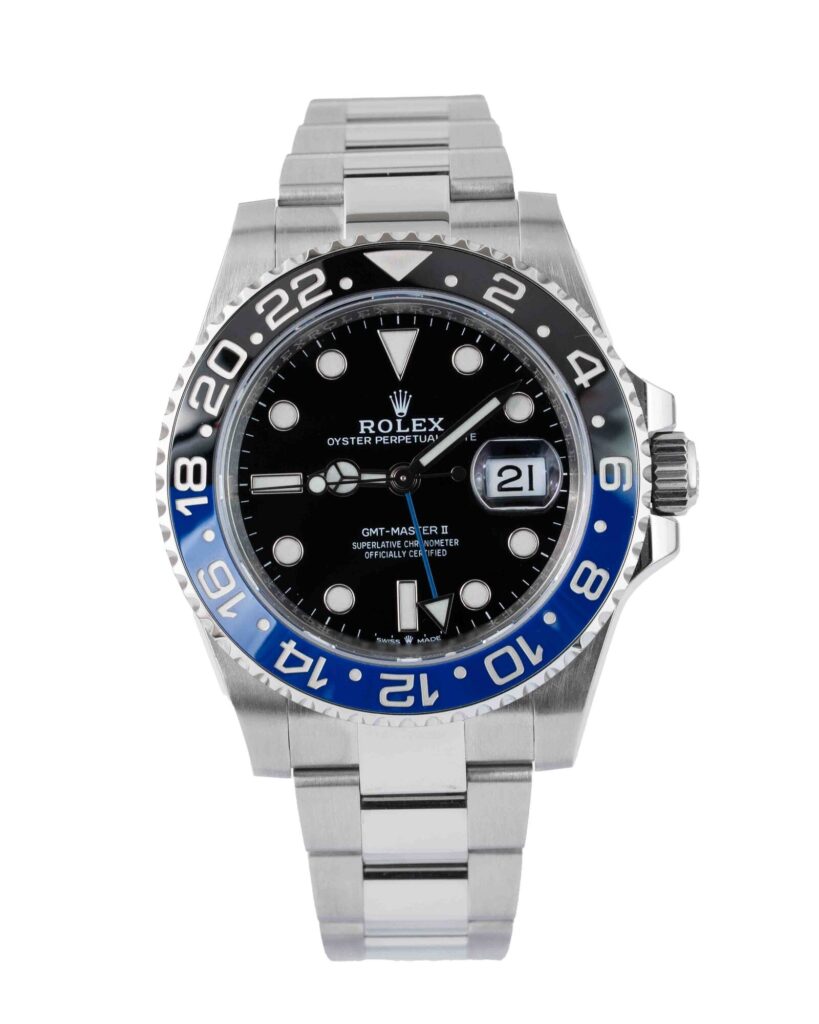 brand: Rolex Reference: 126710BLNR Model: GMT-Master II case MATERIAL: Steel strap: Bracelet case Size (MM): 40mm Dial colour: Black Bezel: Ceramic Year: 11/2021 Condition: Excellent Box papers : Paperwork/box