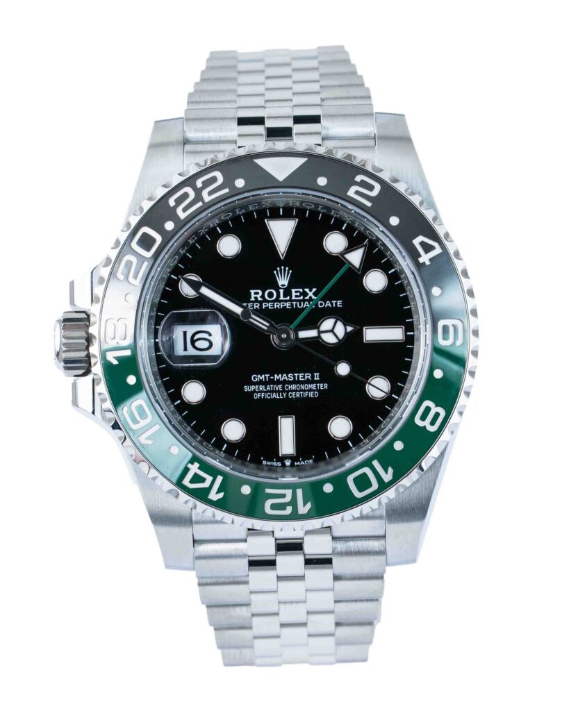 brand: Rolex Reference: 126720VTNR Model: GMT-Master II case MATERIAL: Steel strap: Bracelet case Size (MM): 40mm Dial colour: Black Bezel: Ceramic Year: 05/2024 Condition: Excellent Box papers : Paperwork/box