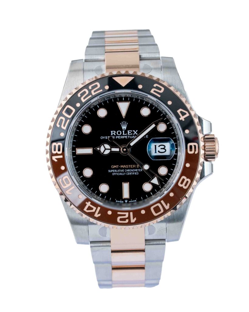 brand: Rolex Reference: 126711CHNR Model: GMT-Master II case MATERIAL: Steel & Rose Gold strap: Bracelet case Size (MM): 40mm Dial colour: Black Bezel: Ceramic Year: 10/2023 Condition: Unworn Box papers : Paperwork/box