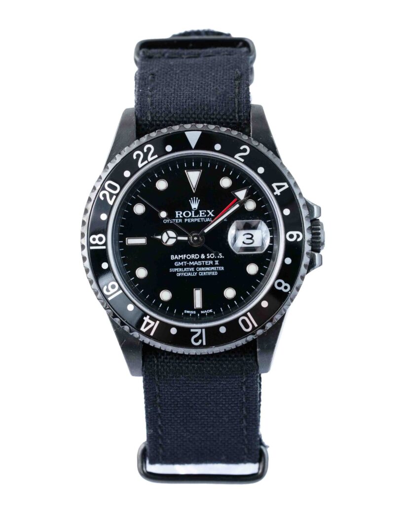 brand: Rolex Reference: 16710 Model: GMT-Master II case MATERIAL: Steel strap: Fabric case Size (MM): 40mm Dial colour: Black Bezel: Steel Condition: Excellent Box papers : Box