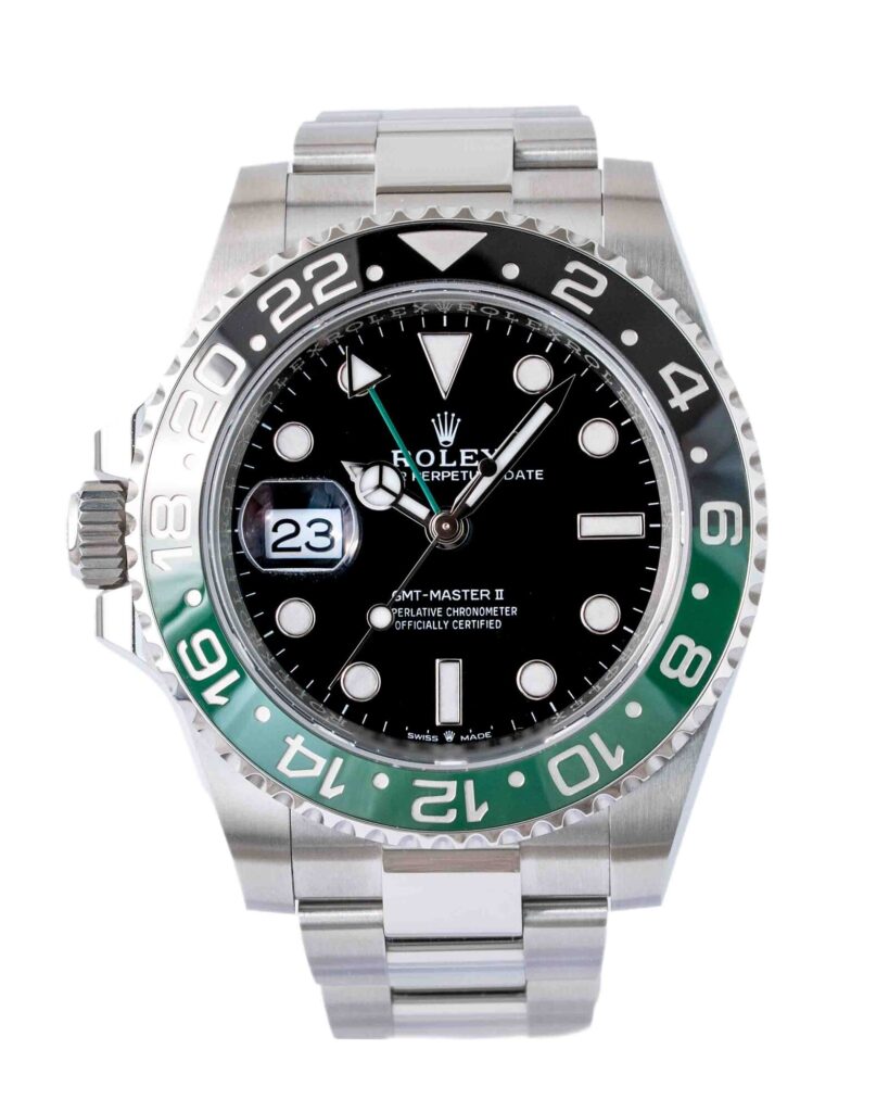 brand: Rolex Reference: 126720VTNR Model: GMT-Master II case MATERIAL: Steel strap: Bracelet case Size (MM): 40mm Dial colour: Black Bezel: Ceramic Year: 05/2024 Condition: Excellent Box papers : Paperwork/box