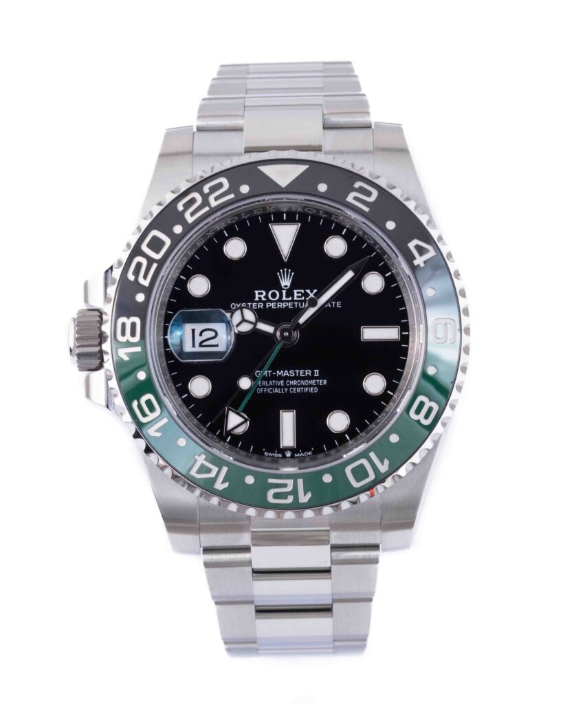 brand: Rolex Reference: 126710GRNR Model: GMT-Master II case MATERIAL: Steel strap: Bracelet case Size (MM): 40mm Dial colour: Black Bezel: Ceramic Year: 01/2025 Condition: Unworn Box papers : Paperwork/box