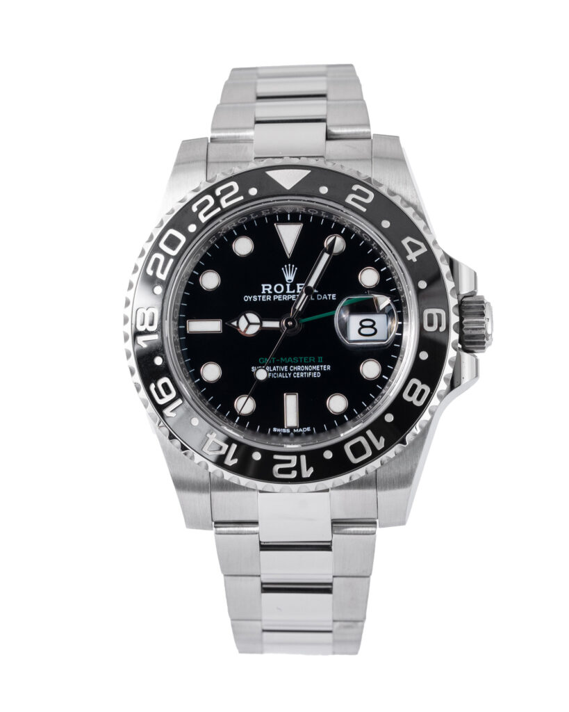 brand: Rolex Reference: 116710LN Model: GMT-Master II case MATERIAL: Steel strap: Bracelet case Size (MM): 40mm Dial colour: Black Bezel: Ceramic Year: 06/2018 Condition: Excellent Box papers : Paperwork/box