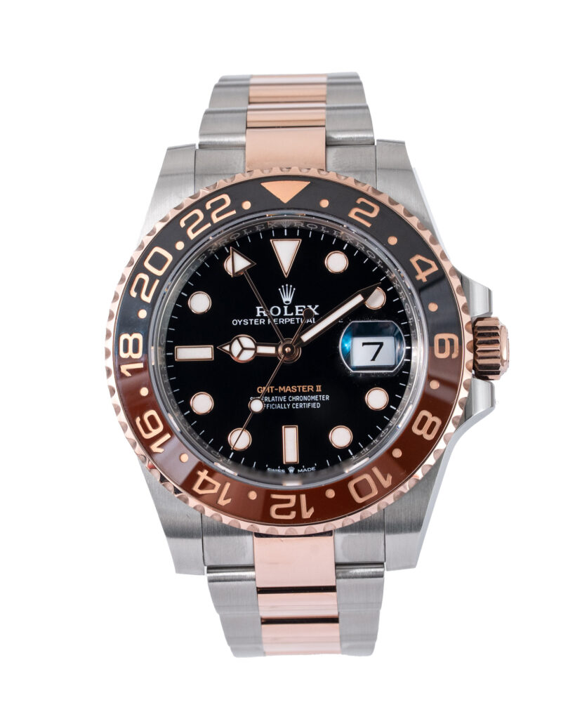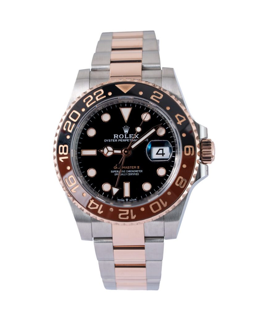 brand: Rolex Reference: 126711CHNR Model: GMT-Master II case MATERIAL: Steel & Rose Gold strap: Bracelet case Size (MM): 40mm Dial colour: Black Bezel: Ceramic Year: 12/2024 Condition: Excellent Box papers : Paperwork/box