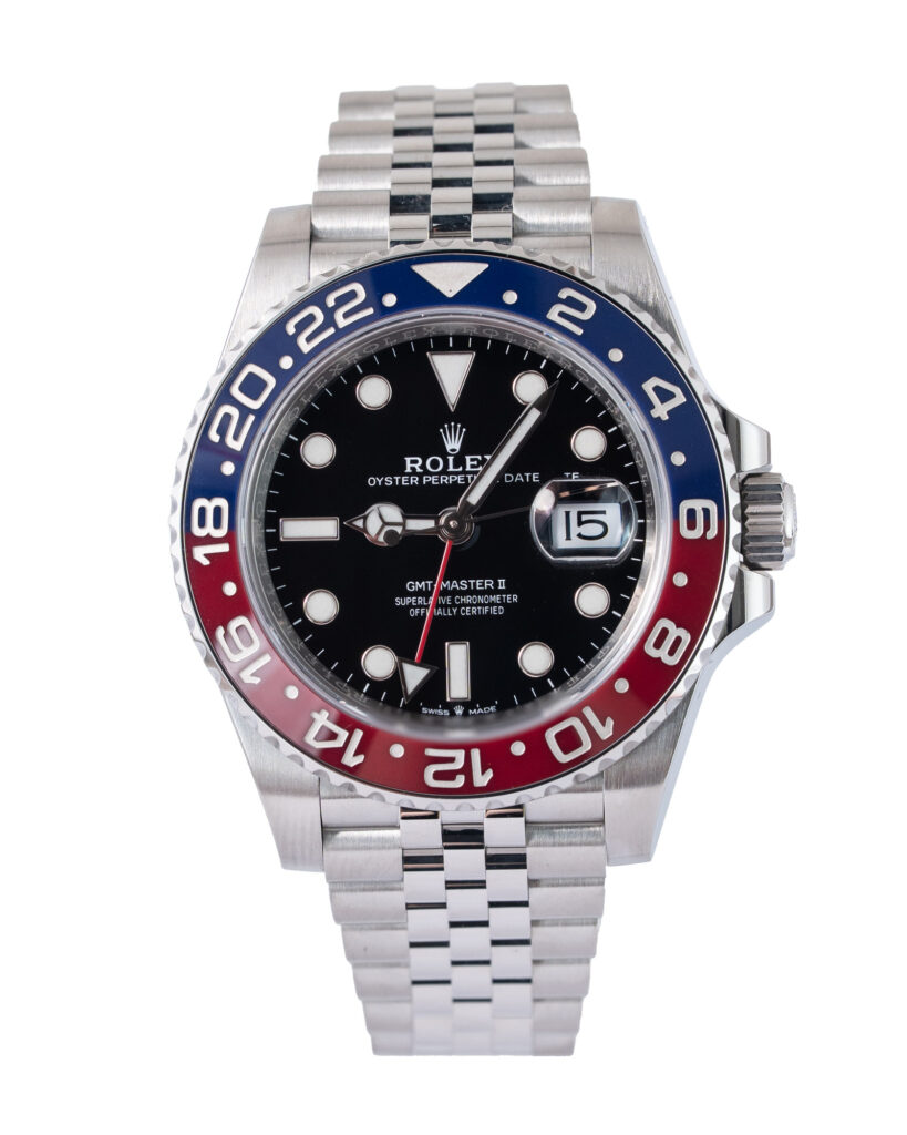 brand: Rolex Reference: 126710BLRO Model: GMT-Master II case MATERIAL: Steel strap: Bracelet case Size (MM): 40mm Dial colour: Black Bezel: Ceramic Year: 10/2020 Condition: Excellent Box papers : Paperwork/box