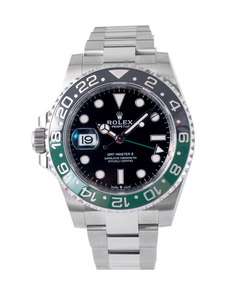 brand: Rolex Reference: 126710GRNR Model: GMT-Master II case MATERIAL: Steel strap: Bracelet case Size (MM): 40mm Dial colour: Black Bezel: Ceramic Year: 10/2025 Condition: Unworn Box papers : Paperwork/box