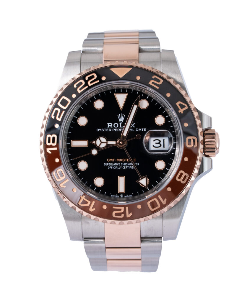 brand: Rolex Reference: 126711CHNR Model: GMT-Master II case MATERIAL: Steel & Rose Gold strap: Bracelet case Size (MM): 40mm Dial colour: Black Bezel: Ceramic Year: 06/2023 Condition: Excellent Box papers : Paperwork/box