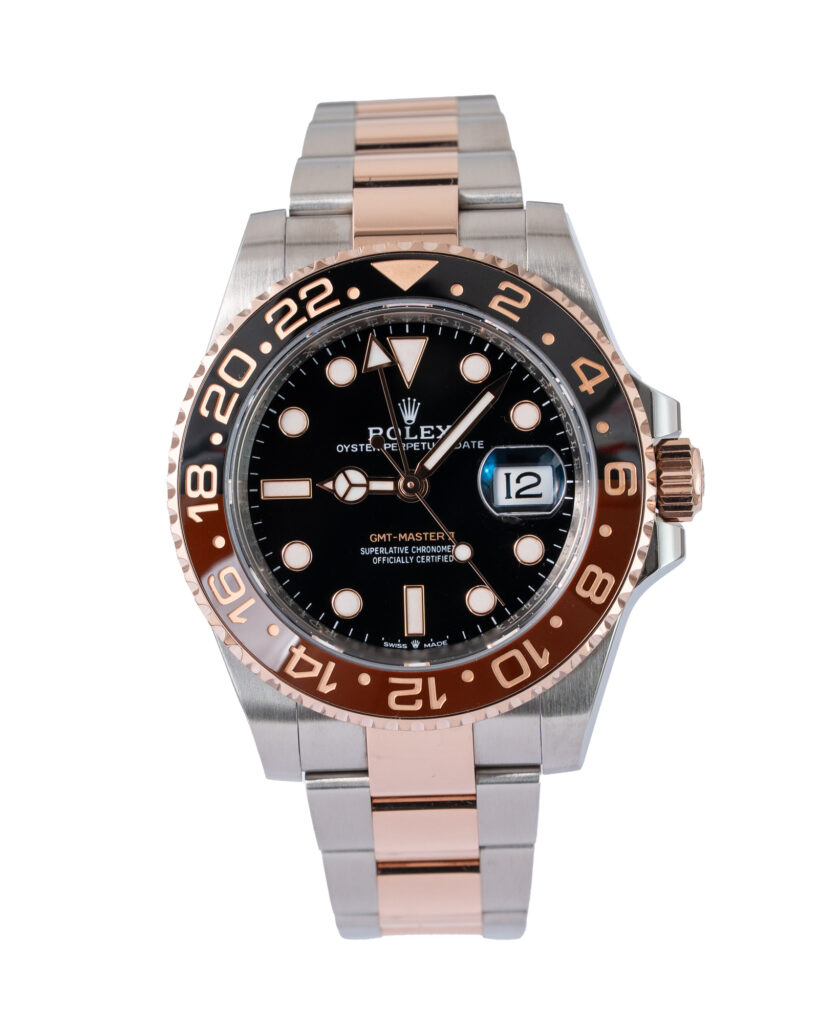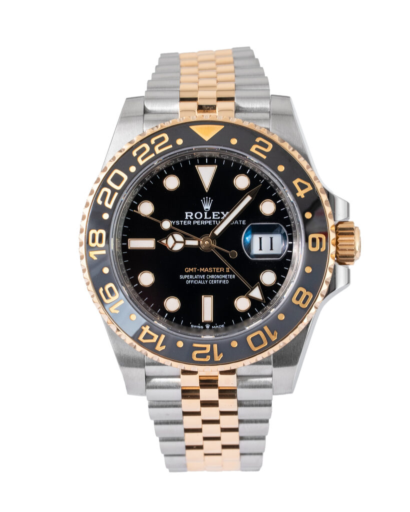 brand: Rolex Reference: 126713GRNR Model: GMT-Master II case MATERIAL: Steel & Yellow Gold strap: Bracelet case Size (MM): 40mm Dial colour: Black Bezel: Ceramic Year: 08/2023 Condition: Excellent Box papers : Paperwork/box