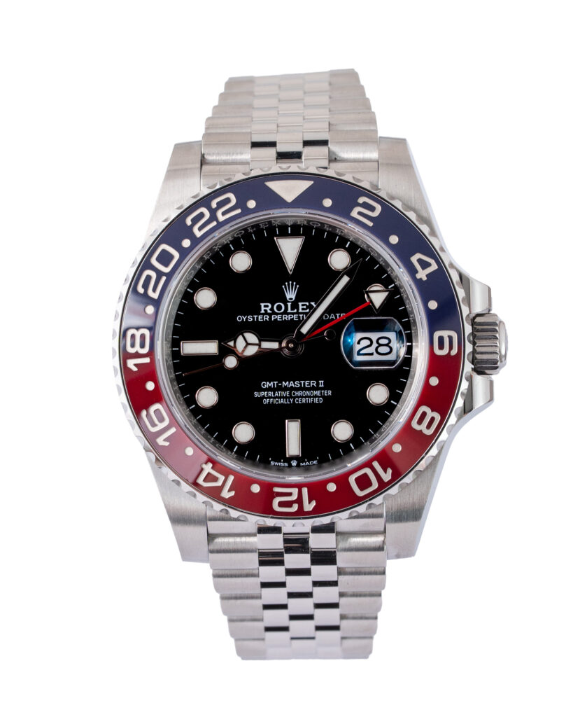 brand: Rolex Reference: 126710BLRO Model: GMT-Master II case MATERIAL: Steel strap: Bracelet case Size (MM): 40mm Dial colour: Black Bezel: Ceramic Year: 07/2021 Condition: Excellent Box papers : Paperwork/box