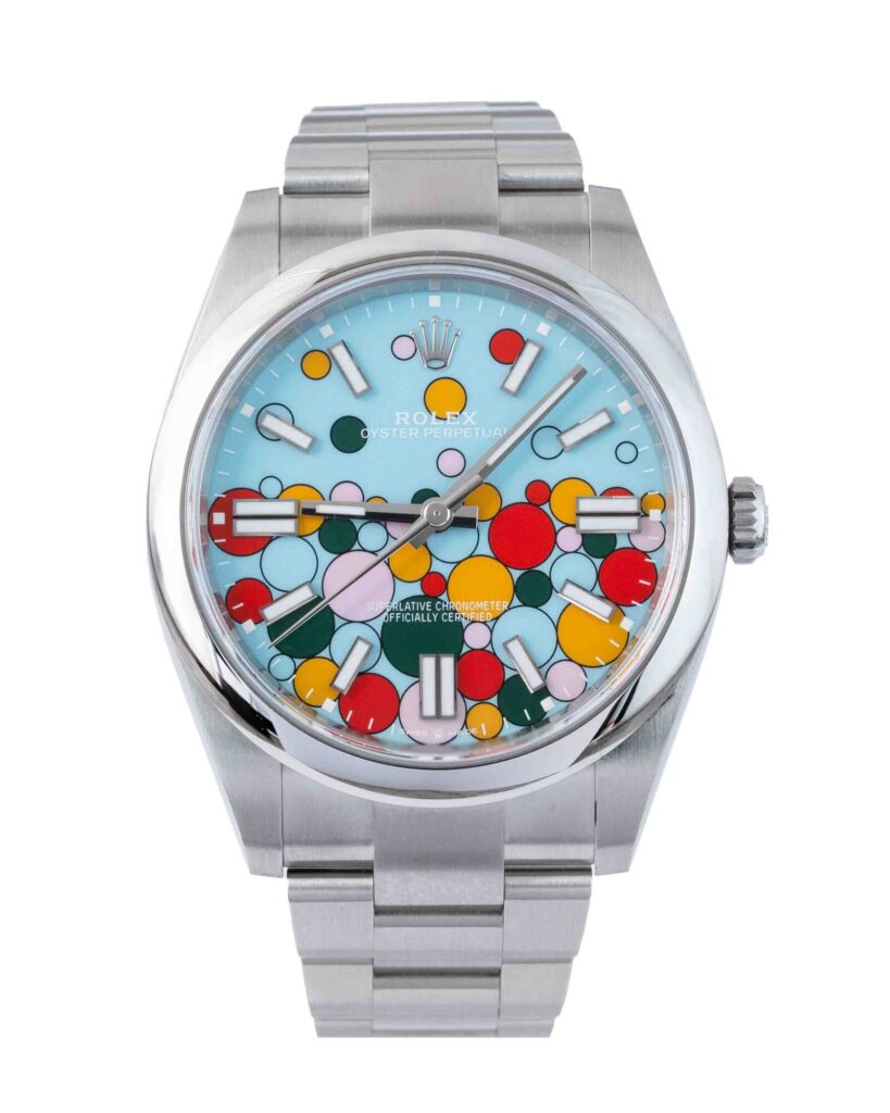 brand: Rolex Reference: 124300 Model: Oyster Perpetual case MATERIAL: Steel strap: Bracelet case Size (MM): 41mm Dial colour: Blue Bezel: Steel Year: 02/2024 Condition: Unworn Box papers : Paperwork/box