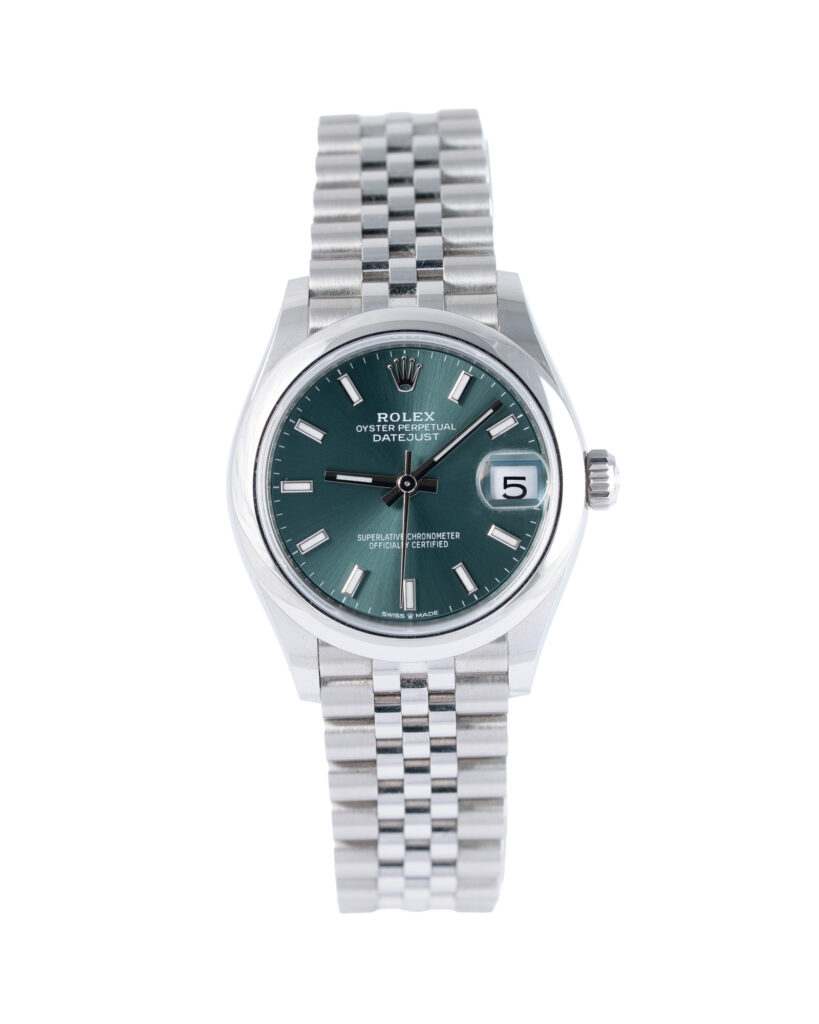 Make: Rolex Reference: 278240 Model: Datejust Case: Stainless Steel (SS) Bracelet: Jubilee Size: 31mm Dial colour: Green Bezel: Smooth Year: 02/2024 Condition: Excellent Box papers : Paperwork/box