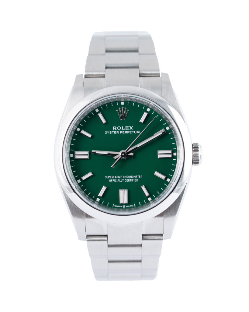 Make: Rolex Reference: 126000 Model: Oyster Perpetral Case: Steel Bracelet: Oyster Size: 36mm Dial colour: Green Bezel: Steel Year: 03/2024 Condition: Excellent Box papers : Paperwork/box