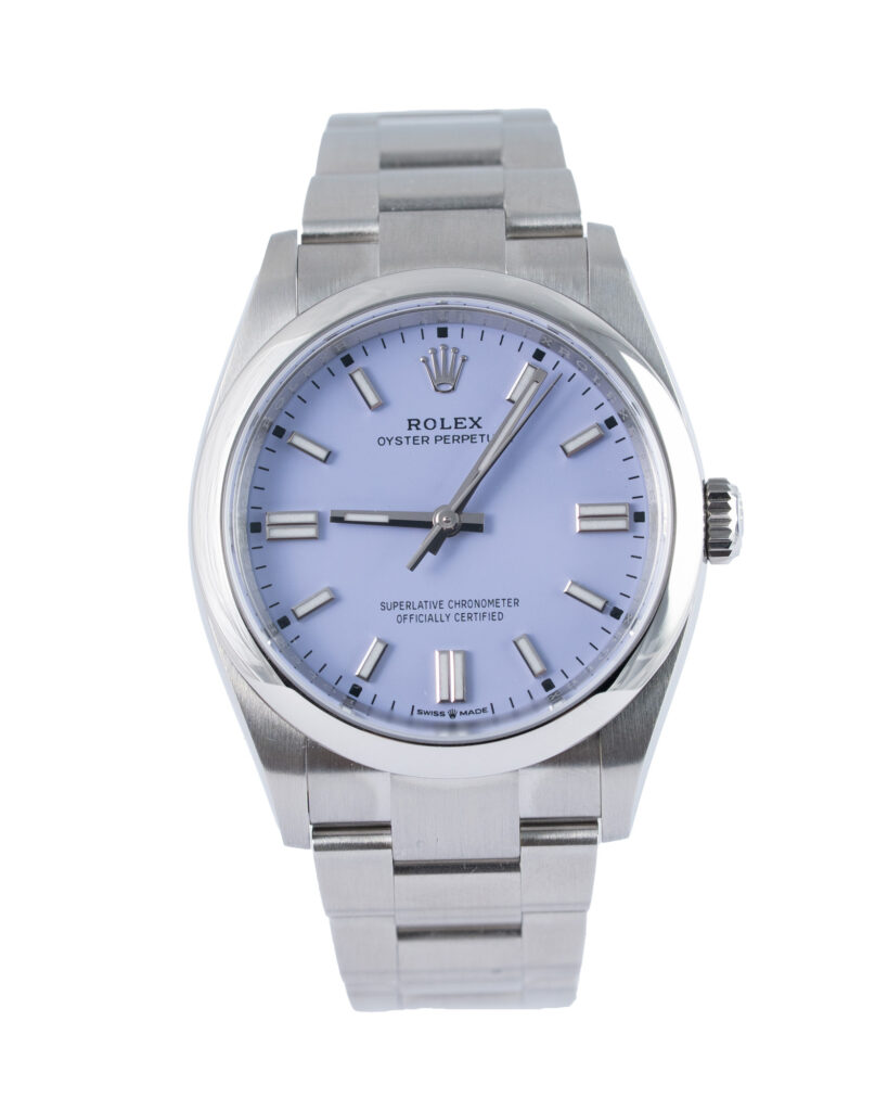Make: Rolex Reference: 126000 Model: Oyster Perpetual Case: Stainless Steel (SS) Bracelet: Oyster Size: 36mm Dial colour: Purple Bezel: Steel Year: 08/2025 Condition: Excellent Box papers : Paperwork/box