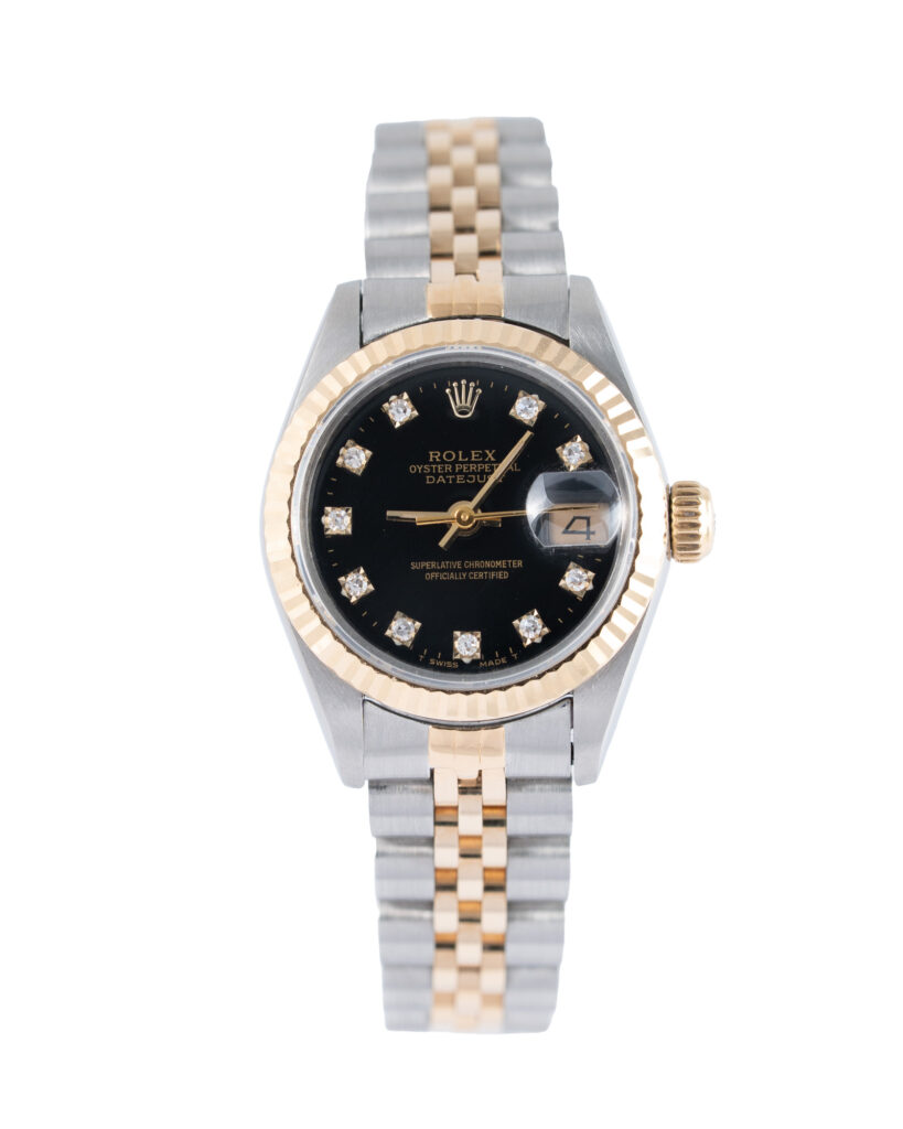 Make: Rolex Reference: 68273 Model: Datejust Case: Two Tone Yellow Gold (TTYG) Bracelet: Jubilee Size: 26mm Dial colour: Black Bezel: Fluted Condition: Good Box papers : Box