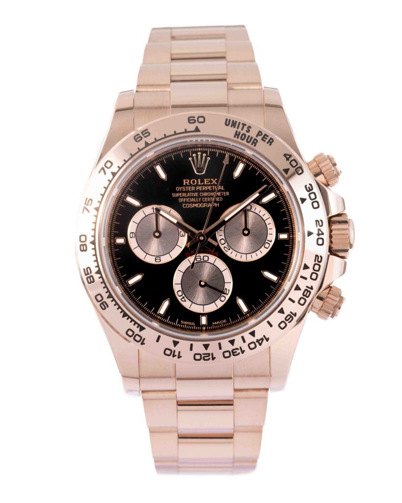 brand: Rolex Reference: 126505 Model: Daytona case MATERIAL: Rose Gold strap: Bracelet case Size (MM): 40mm Dial colour: Black Bezel: Rose Gold Year: 02/2024 Condition: Unworn Box papers : Paperwork/box