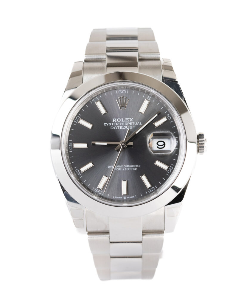 brand: Rolex Reference: 126300 Model: Datejust case MATERIAL: Steel strap: Bracelet case Size (MM): 41mm Dial colour: Rhodium Bezel: Steel Year: 03/2024 Condition: Unworn Box papers : Paperwork/box