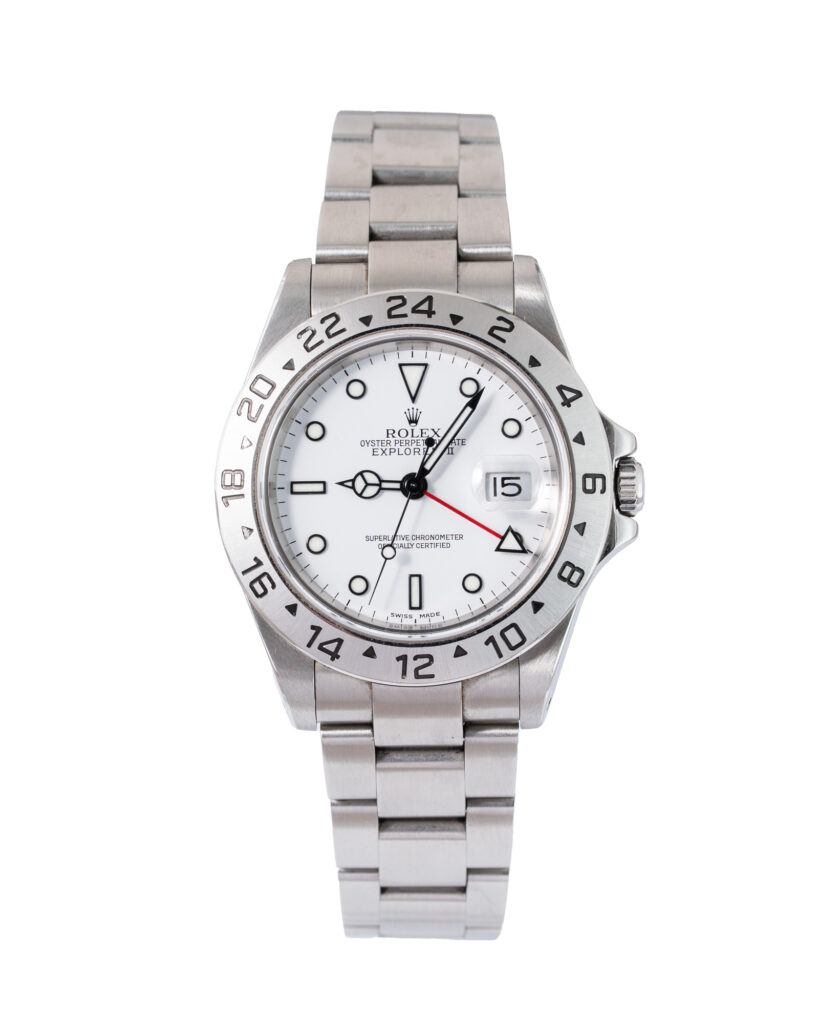 brand: Rolex Reference: 16570 Model: Explorer II case MATERIAL: Steel strap: Bracelet case Size (MM): 40mm Dial colour: White Bezel: Steel Year: 03/2002 Condition: Excellent Box papers : Complete