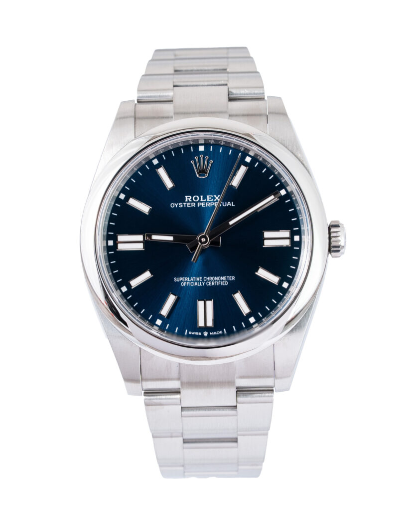 brand: Rolex Reference: 124300 Model: Oyster Perpetual case MATERIAL: Steel strap: Bracelet case Size (MM): 41mm Dial colour: Blue Bezel: Steel Year: 10/2024 Condition: Excellent Box papers : Paperwork/box