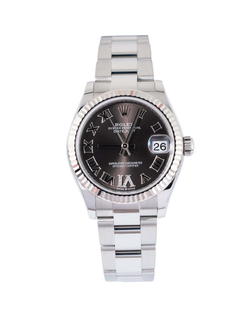 brand: Rolex Reference: 278274 Model: Datejust case MATERIAL: Steel strap: Bracelet case Size (MM): 31mm Dial colour: Black Bezel: White Gold Year: 06/2021 Condition: Excellent Box papers : Paperwork/box